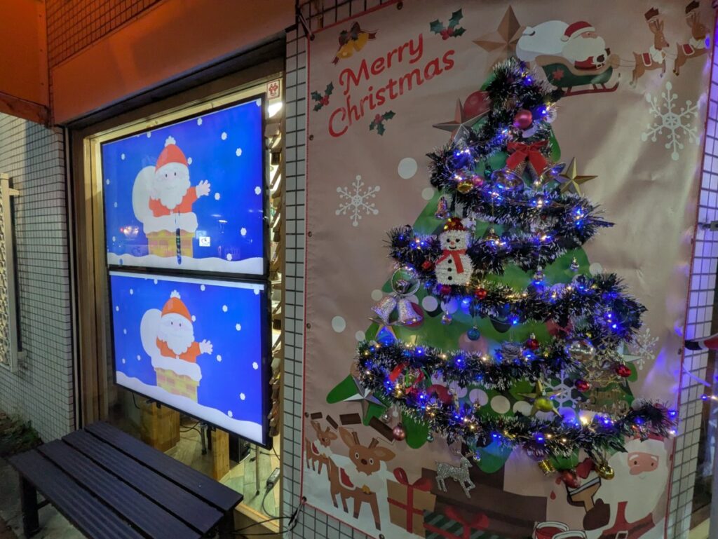 12月に入り、街も徐々にクリスマスムード一色に染まってきました。イルミネーションが灯り始め、近隣のショップの装飾も華やかになり、どこか気持ちが浮き立つ季節です。そんな雰囲気に負けないように、私たち塗装職人も例年通り、東京店に大きなサンタとイルミネーションを設置しました。